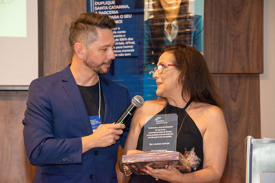 A tarde de confraternização e networking entre síndicos, empresas e fornecedores também foi de muita emoção. Parceiro de longa data do Jornal dos Condomínios, o SECOVI Florianópolis/Tubarão prestou uma linda homenagem, com a entrega de uma placa comemorativa pela passagem dos 22 anos da publicação.