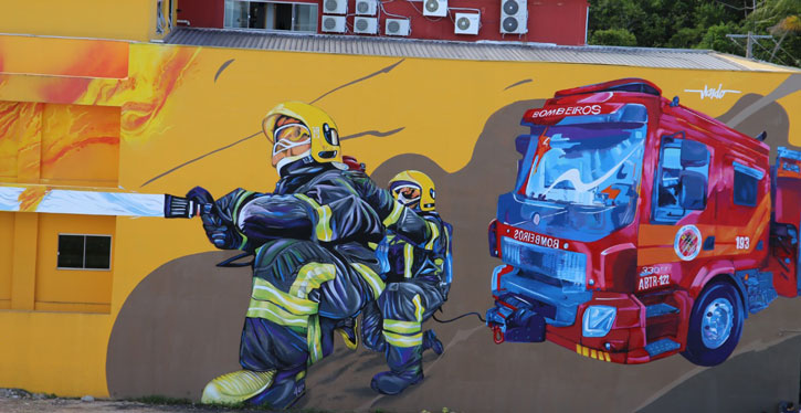 Por exemplo, a pintura na edificação do Corpo de Bombeiros, que leva o título “Vidas Alheias e Riquezas a Salvar”, com a arte de Fernando Cardoso, o destaque é o trabalho prestado pelos bombeiros à população.