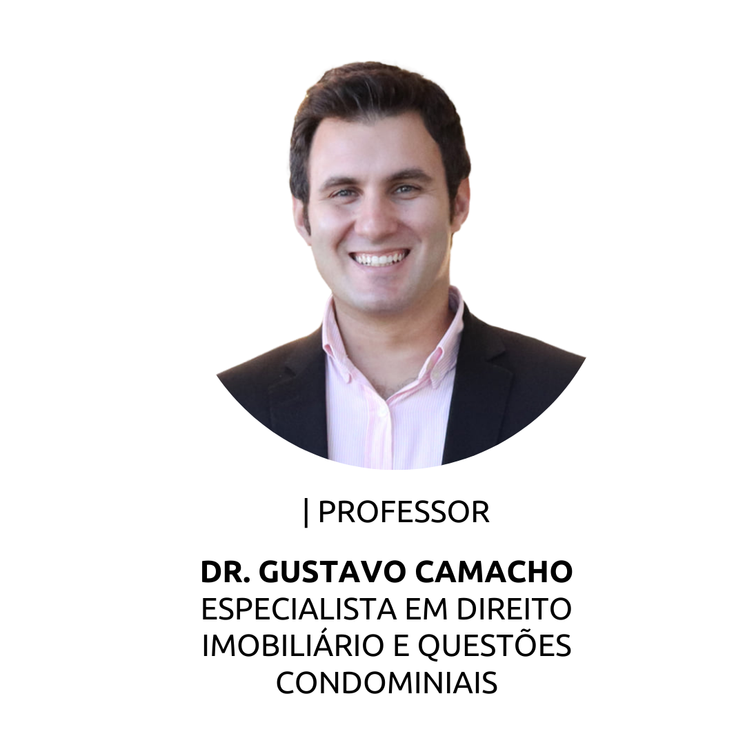 O curso será ministrado pelo Dr. Gustavo Camacho, especialista em direito imobiliário e questões condominiais, e contará com a participação da Dra. Lívia Braz Furlan, especialista em direito imobiliário e questões condominiais, como professora convidada em um dos módulos e também o especialista em gestão de negócios, Thiago Peichó, que irá ministrar uma palestra sobre Inadimplência Condominial. Além disso, o curso contará com a abertura (de forma remota, online) do Dr. Rodrigo Karpat, maior especialista em direito imobiliário e questões condominiais do país.