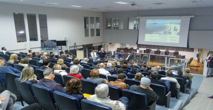 A reunião foi realizada pelo vereador Marcelo Achutti, na Câmara de Vereadores de Balneário Camboriú e contou com a presença de Douglas Costa Rocha, presidente da Emasa e do presidente do Secovi, Sérgio Luiz dos Santos.