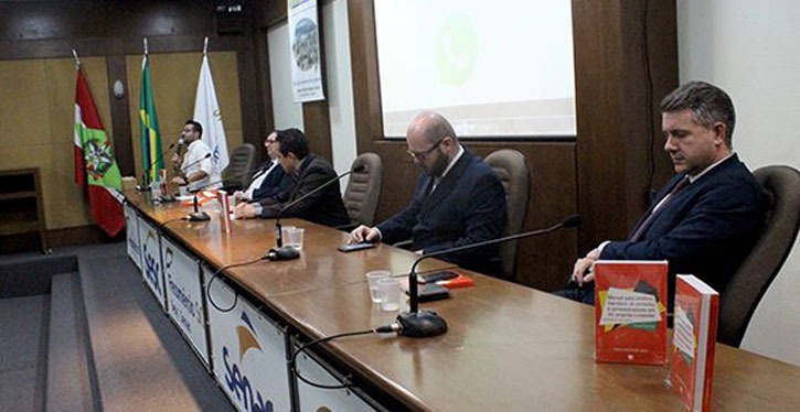 O encontro foi mediado por Odyrlei Rocha e também contou com a presença do trio de especialistas Dennis Martins, advogado e diretor do Instituto Brasileiro do Direito Imobiliário em Santa Catarina (IBRADIM), que falou sobre alteração de destinação de área comum; Fernando Willrich, presidente do Secovi Florianópolis e Tubarão e advogado especialista em condomínios, que explicou questões referentes à cobrança de multas; e Walter João Jorge Jr, professor e consultor em condomínios, que compartilhou a sua vivência em assembleias, dando dicas de como banir o comportamento antissocial em reuniões.