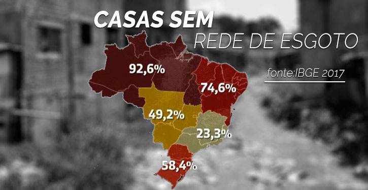 No Brasil, o saneamento básico é um direito assegurado pela Constituição e definido pela Lei n. 11.445/2007 como o conjunto dos serviços, infraestrutura e instalações operacionais de abastecimento de água, esgotamento sanitário, limpeza urbana, drenagem urbana, manejos de resíduos sólidos e de águas pluviais. E mesmo assim, depois de 13 anos em vigor, apenas 45% do esgoto produzido pela população brasileira passa pelo processo de tratamento adequado. O restante é despejado diretamente na natureza, uma quantidade que equivale a seis mil piscinas olímpicas de dejetos jogados no solo e em rios todos os dias, segundo o último estudo divulgado pelo Instituto Trata Brasil.