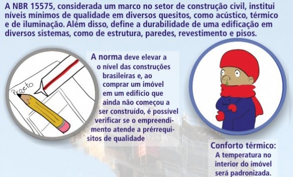 Segundo o conselheiro do Secovi/SC, Antonio José Moreira, a norma não se aplicará em obras prontas. A regulamentação estabelece os prazos de operação do edifício e os seus sistemas e devem estar detalhados na documentação que acompanha o edifício ou subsidia a construção. “As alterações são importantes para o consumidor que terá um instrumento para exigir seus direitos em caso de problemas construtivos", explica. Ao ser aplicada a norma, quem for comprar um imóvel em um edifício que ainda não começou a ser construído ou que nem foi protocolado poderá verificar se o empreendimento foi construído de acordo com uma série de prérrequisitos de qualidade estrutural. A intenção é garantir um desempenho mínimo para a segurança dos usuários, como iluminação, pisos adequados, alvenaria, ou seja, a estrutura de maneira geral.