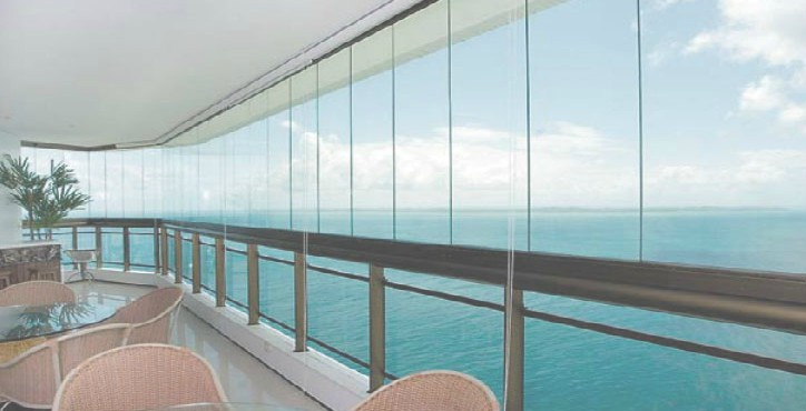 Há três tipos de sistemas de envidraçamento: o sistema europeu – mais solicitado no mercado -, que permite a abertura total da varanda, por folhas de vidro que se recolhem completamente em um dos cantos; o sistema Stanley, que possibilita abertura parcial, em que as folhas ficam escondidas atrás de um painel fixo; e o sistema Versatik, que oferece menor vão de abertura, se assemelha a uma grande janela com duas laterais fixas e lâminas centrais que correm por um único trilho.