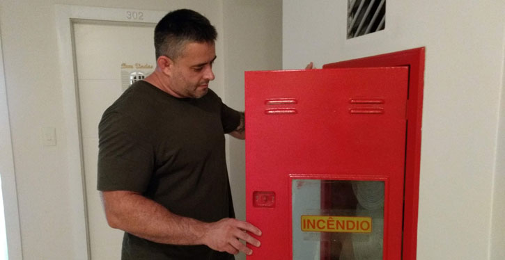 - Revisão dos equipamentos do projeto preventivo (iluminação de emergência, validade de mangueiras, extintores de incêndio e registros de gás)