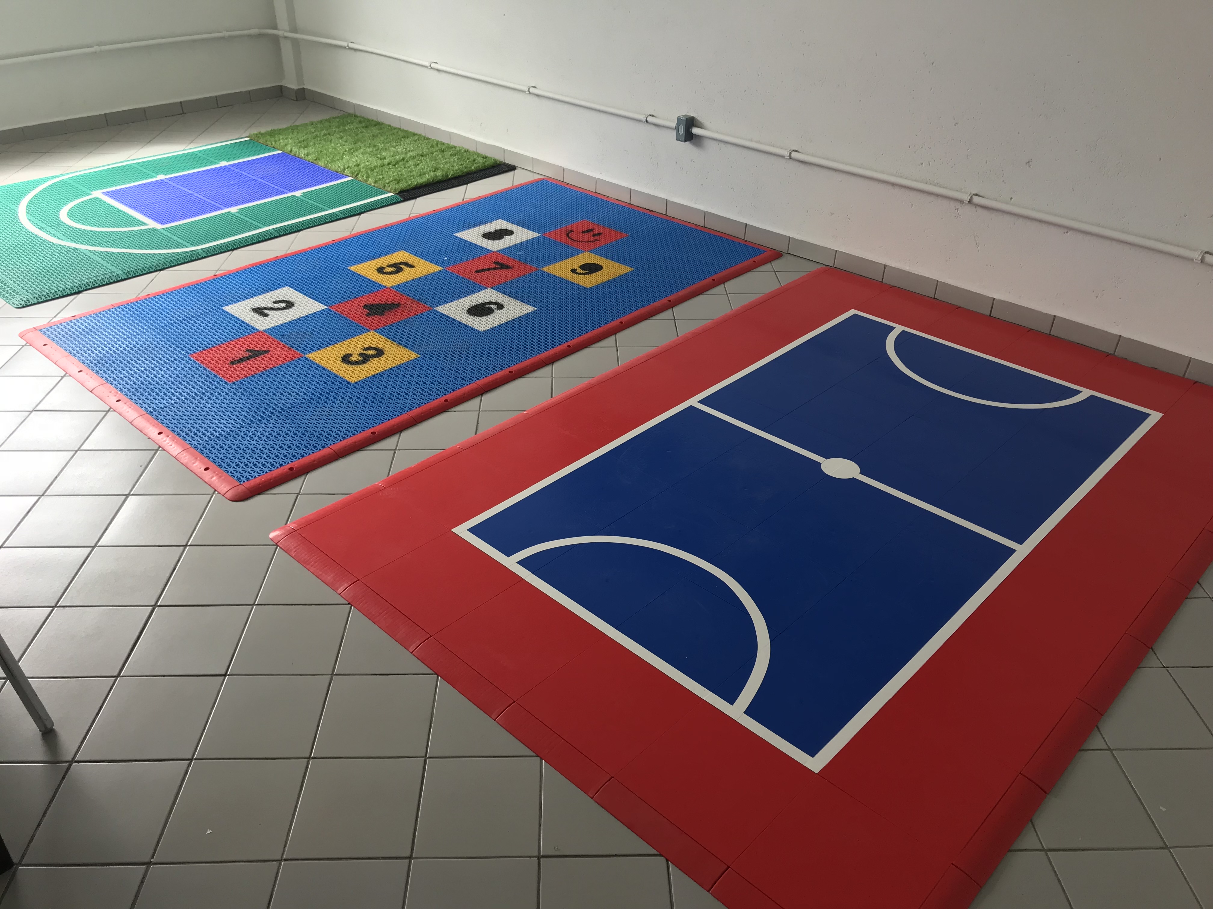 Quadras Esportivas - Piso modular, pintura, grama sintética e equipamentos
