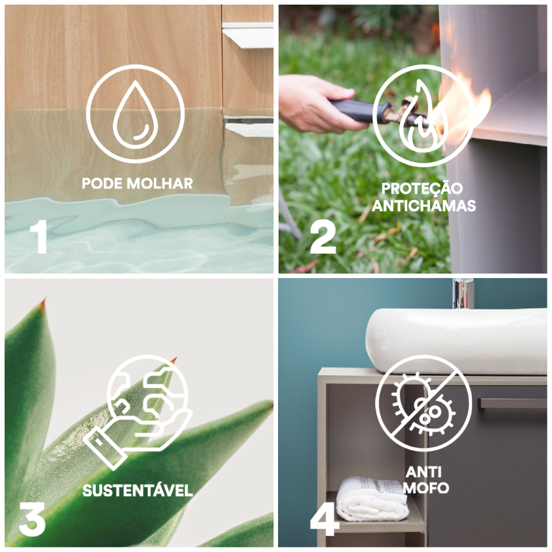 O polyvinyl (também conhecido como cloreto de vinila ou policloreto de vinil, mais conhecido pelo acrónimo PVC), além de não elevar o custo final do produto, ainda tem como principais benefícios a resistência à água, pois não mofa, não enferruja e pode ser lavado sempre que precisar; é totalmente saudável porque não adere bactérias e fungos; é resistente ao calor e não propaga chamas; e é 100% reciclável, contribuindo para a sustentabilidade do meio-ambiente.