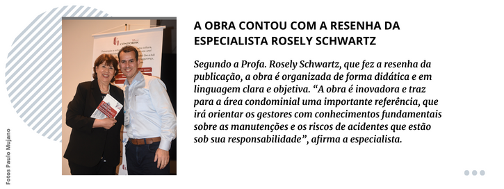 A obra, em versão impressa, foi lançada no último dia 9 de novembro em São Paulo e traz um resumo das possibilidades de riscos com os quais síndicos, gerentes prediais, zeladores, prestadores de serviços e condôminos podem se deparar no dia a dia de uma edificação, mesmo que todo o cronograma de manutenção esteja em ordem. Isso porque, a vulnerabilidade pode surgir de uma desatenção de um profissional que está fazendo uma manutenção (deixando uma fiação exposta energizada em área de circulação de pessoas, por exemplo) ou na imprudência de moradores (que ao descartarem objetos próximos das escadarias e portas corta-fogo podem obstruir a rota de fuga de um incêndio).