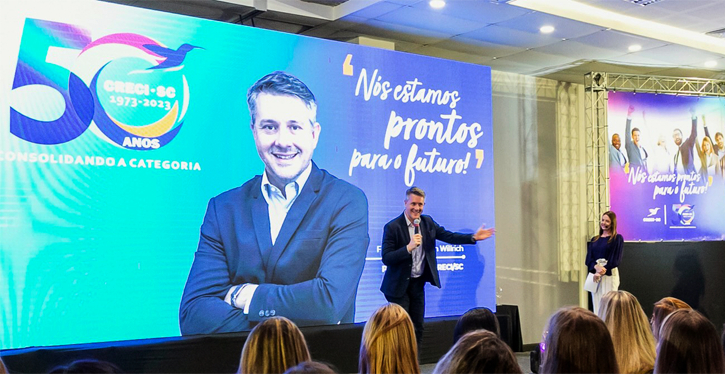 A plateia ouviu e interagiu com a escritora best-seller e mentora Chai Carioni, a convidada especial da noite. A atividade fez parte da programação pelos 50 anos do CRECI, que planeja a realização de 100 eventos em todo o Estado. A palestra teve apoio do Jornal dos Condomínios, Corretoras Parceiras e Associação dos Corretores de Imóveis de Balneário Camboriú. Dirigida a corretoras de imóveis e síndicas, está disponível nos canais do Conselho no Instagram e Youtube.