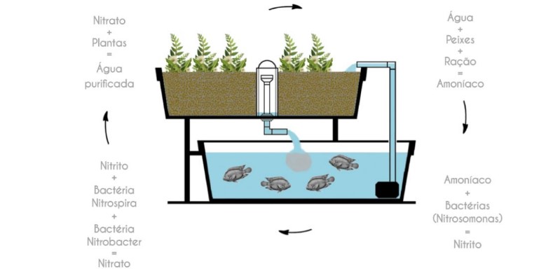 É um sistema que resolve um problema da piscicultura solucionando um problema da hidroponia. Basta alimentar os peixes que o ciclo se fecha. O excremento produzido pelos peixes é rico em nutrientes que alimentam as plantas, que por sua vez filtram a água para os peixes.