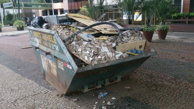 As conhecidas caçambas de lixo, que foram transformadas em depósitos de resíduos sólidos de obras, conhecidos por entulho, proliferam de forma acelerada pelos centros urbanos, cotidianamente.