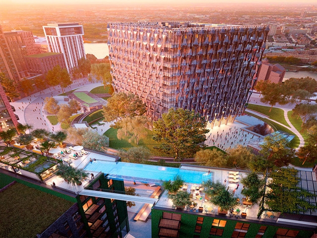 Piscina vira passarela para ligar dois prédios em NY a 91 metros de altura
