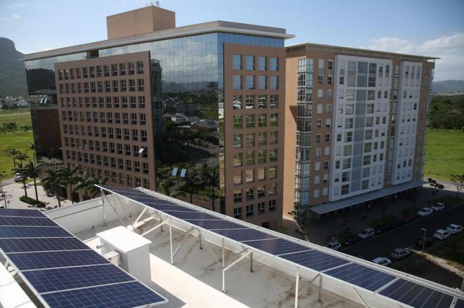 No bairro Cidade Pedra Branca, em Palhoça, todos os empreendimentos têm alguma tecnologia que impacta menos a natureza, como a utilização de placas fotovoltaicas