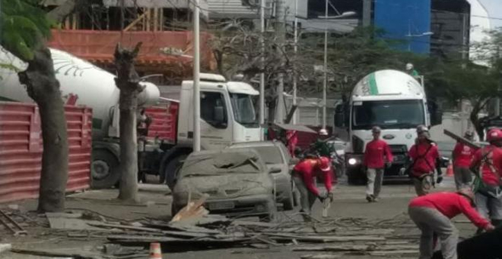 Carros que estavam estacionados ao lado da construção foram atingidos, mas não há feridos. A prefeitura informou que a Avenida Normando Tedesco, onde fica a obra, ficará interditada até 14h e o trânsito será desviado para a Rua 4600.