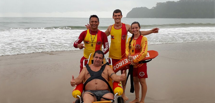 Na manhã do último domingo (03/12) o primeiro banhista foi agraciado pelo projeto Praia Acessível, na praia de Cabeçudas – Itajaí.