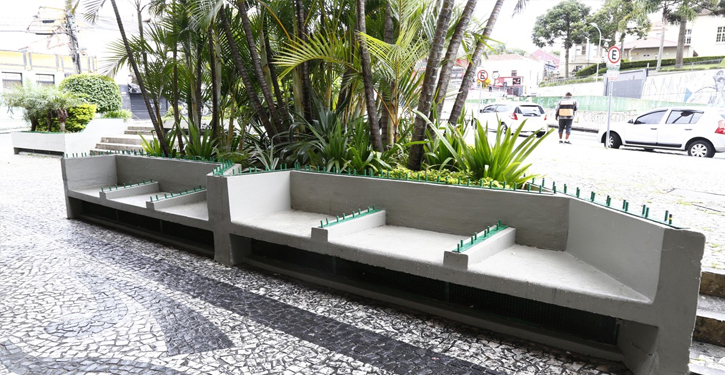 Condomínio instala banco “antimendigo” em calçadão e é notificado pela Prefeitura