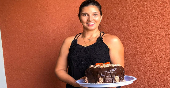 Patrícia Caramuru tem formação na área de saúde, mas descobriu a paixão por bolos e salgados desde quando tinha 17 anos, que foi a época que começou a trabalhar no segmento. Hoje, além desses alimentos, ela vende massas integrais há três anos.