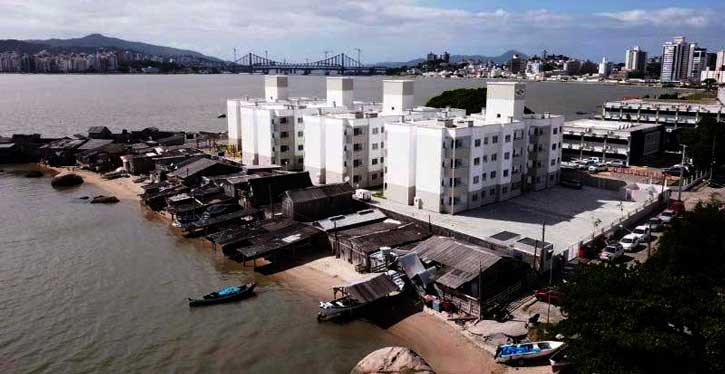 Você já se imaginou morando em uma palafita à beira-mar, sem condições mínimas de saneamento básico, sem instalação correta de energia elétrica, vivendo com riscos de acidentes e infraestrutura precária? Não né. Pois essa era a vida do seu Luiz Derli Córdova, de 57 anos, e de sua companheira, que assim como outras famílias, residiam nos casebres da Ponta do Leal, no Balneário Estreito, região continental de Florianópolis.