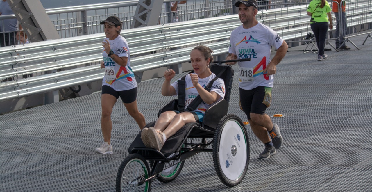 O Instituto IPE - Inclusão pelo Esporte, apoiado pela ACGB-SC, participou da 1ª Corrida da Ponte Hercílio Luz, em celebração à reabertura da ponte. O IPE trabalha com o desenvolvimento de ações para estimulação de pessoas com limitações físicas a praticar atividades esportivas.