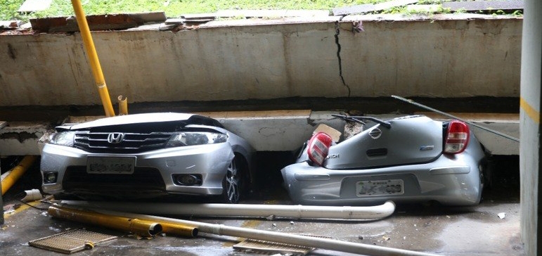 Teto desaba e cai sobre veículos estacionados em condomínio em Brasília. Foto: Agência Brasil