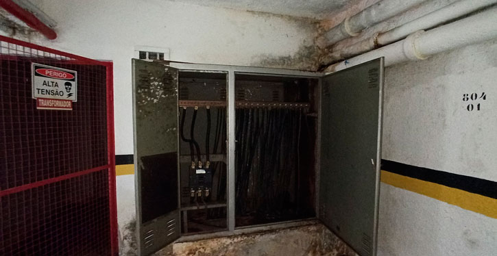 Parecia ser uma mera infiltração próxima ao quadro do sistema elétrico de um grande condomínio da Grande Florianópolis. No entanto, verificada a situação, o prédio teve de ser interditado e evacuado. Uma tubulação do esgotamento sanitário que passava ao lado tinha vazamentos há anos, que chegou aos transformadores. O risco de uma tragédia era iminente.