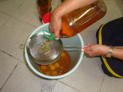 Como demonstra Dona Lurdes, colaboradora do Residencial Priscila, localizado no Balneário do Estreito, em Florianópolis, o primeiro passo é coar o óleo usado.