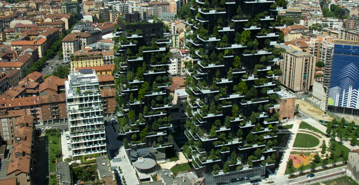Entre as tendências mundiais, que alinham arquitetura e ecologia, estão as “miniflorestas” nas sacadas, que são regadas a partir de um sistema de reutilização da água dos apartamentos. A inovação vem de um condomínio em Milão, na Itália. O Bosco Verticale é o primeiro projeto desse tipo e abrigou mais de 900 árvores, 4 mil arbustos e 15 mil espécies de vegetação rasteira. Tudo distribuído entre duas torres, de 38 andares cada.