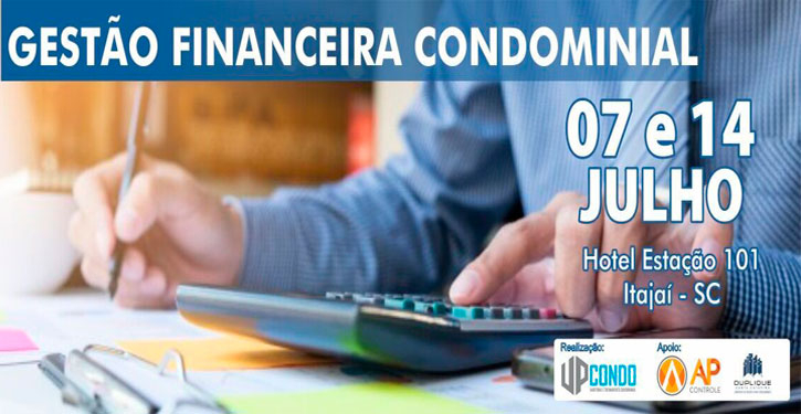 UPCONDO TREINAMENTO certificara o curso Gestão Financeira Condominial , na modalidade de “Curso Livre”; Autorizado em conformidade com a Lei nº 9394/96; Decreto nº 5.154/04; Realizado com o apoio da Duplique Santa Catarina e Apcontrole Sistemas .
