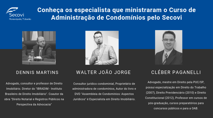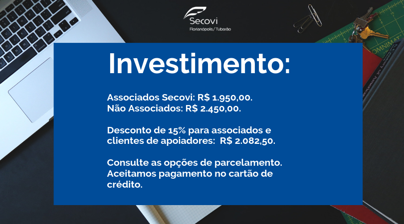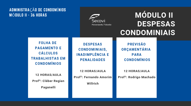 Desconto: Leitor do Jornal dos Condomínios e usuários Portal CondomínioSC tem 15% de desconto no curso. Ao fazer sua inscrição indique e solicite seu desconto!