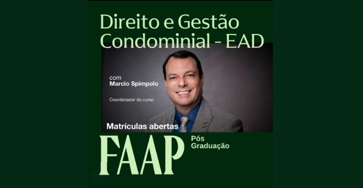 Pós-Graduação online FAAP em Direito e Gestão Condominial inicia em 15/09/2022 e conta com a coordenação do advogado, professor e palestrante, com especialidade em Direito Condominial Marcio Luis Spimpolo.