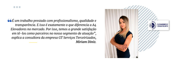A A4 Elevadores não se destaca apenas pelo serviço de manutenção, mas também pela aptidão da equipe comercial para o atendimento personalizado, bem como a elaboração de relatórios e vistorias gratuitas, proporcionando satisfação para o cliente.